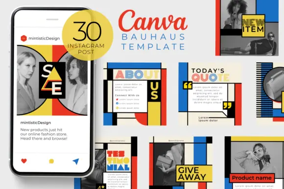 If you are looking to infuse your social media with a sophisticated, avant-garde feel, the Bauhaus Style Red Instagram Canva Post Templates offer the perfect solution. This bundle features 30 pre-designed layouts inspired by the legendary Bauhaus movement, utilizing a striking palette of red, blue, yellow, and black combined with bold lines and geometric shapes.
