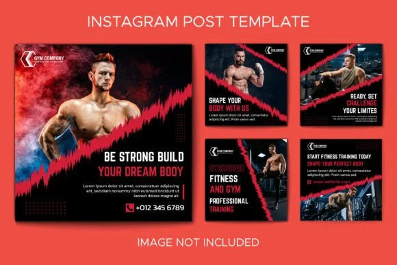 7) Gym Fitness red Instagram canva Post Collection