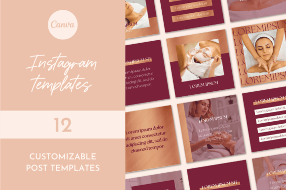 12) Instagram Post canva Templates Beauty red-Gold