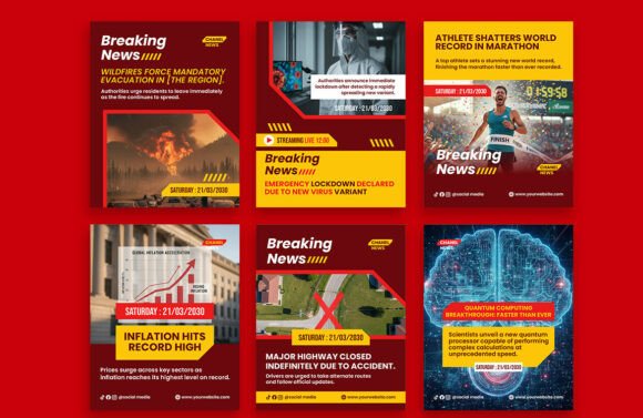 When a story is developing, speed and visibility are everything. These Red and Yellow Breaking News Instagram Post Canva Templates are engineered to stop the scroll and signal high-priority information to your followers instantly. By using high-contrast colors and a professional layout, you can grow your Instagram branding and establish your account as a go-to source for timely updates.