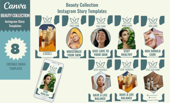 Take your visual storytelling to the next level with our Beauty Two Instagram Story Canva template collection. As the perfect sequel or standalone set for your brand, these 18 captivating designs are engineered to elevate your Instagram aesthetic effortlessly. Whether you’re transitioning your look for a new season or looking to diversify your “online empire,” these Instagram Story Canva templates for the beauty industry provide the professional edge you need.