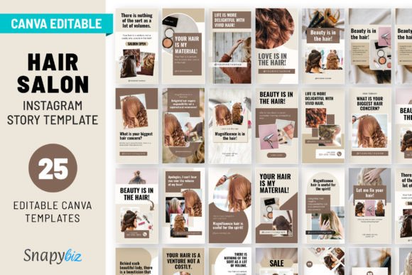 You will receive a link to the Canva Editable Hair Salon Instagram Story Templates, ready for instant customization. Draw in new followers and keep your current clients booked with creative, well-crafted feeds that reflect the high quality of your services.