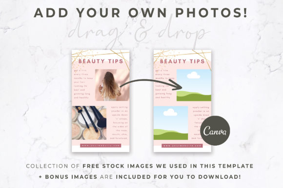 You don’t need professional design software to build a magnificent brand empire. Using the FREE version of Canva, you can edit these templates directly on your smartphone or computer.