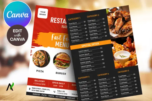 5) Editable Food Restaurant Menu canva Templates