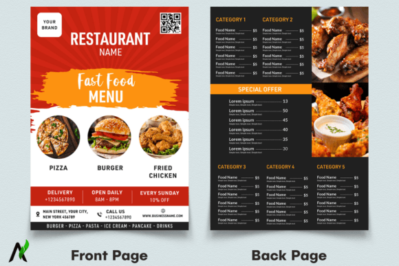 Whether you need a sophisticated Dark Food Restaurant Menu Template for an evening bistro or a high-impact Fast Food Restaurant Menu Template for a quick-service joint, these designs are engineered to make your dishes look absolutely magnificent.