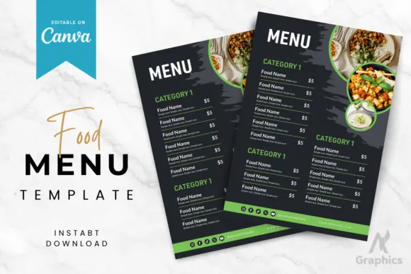 2) Editable Restaurant Menu Canva Template