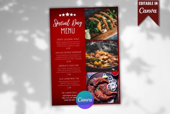 Make every occasion unforgettable with the Special Day Restaurant Menu canva Template. Whether you are hosting a romantic Valentine’s dinner, a festive holiday brunch, or a milestone anniversary celebration, this design provides an elegant and sophisticated backdrop for your exclusive offerings. These printable food menu canva templates are specifically crafted to highlight limited-time dishes, helping you create a sense of exclusivity and “magnificent” atmosphere for your guests.