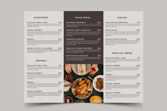 Create your dream brochure menu in minutes with our Trifold Restaurant Menu Canva Templates. These pre-made designs are engineered to engage your customers and give your business a “standout” look without the need for an expensive graphic designer. Whether you are building a menu for a high-end bistro or a casual cafe, these printable food menu templates provide a structured, elegant layout that organizes your dishes perfectly.